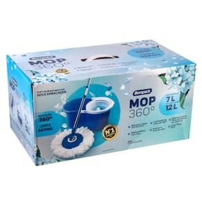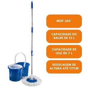 Informações Técnicas Marca: Bompack Modelo: Balde Mop 360° Limpeza fácil Material balde: Polipropileno (PP) Material esfregão: Aço inoxidável e Polipropileno (PP) Material refil: Microfibra Capacidade de uso: 7 Litros Capacidade balde: 12 Litros Altura do cabo: 1,17 m