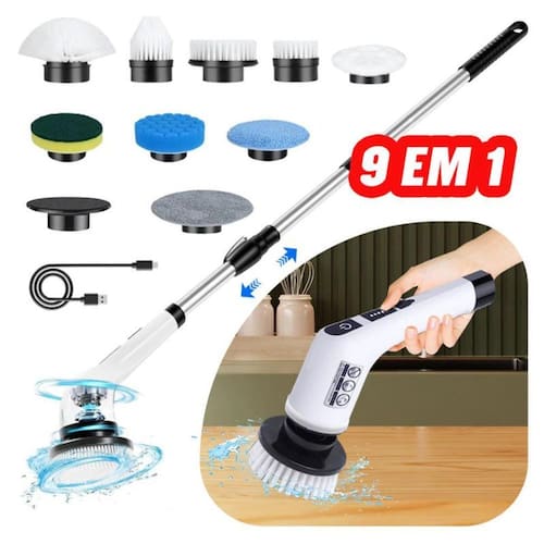 - 1 x Escova de Limpeza Elétrica Branca ou verde - 1 x Cabo Extensor - 9 x Itens Acessórios escovas planas e tipo pincel, panos, esponjas macia e de fibra, adaptador e outras - 1 x Cabo USB STD / Tipo-C compatível com carregador de celular Marca: Não Informado