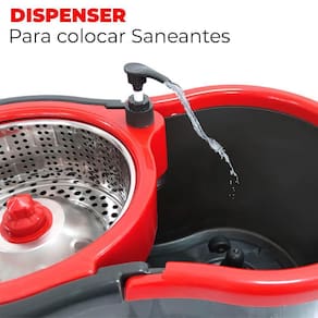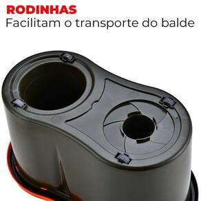 Conta com um balde com 13 litros total e 7 litros em uso, que comporta o produto para limpeza de sua preferência e cesto para a secagem e limpeza do esfregão. Acoplado ao cesto de secagem , temos um dispenser para você deixar o produto de sua preferência e repor sempre que necessário. Além disso o recipiente possui uma alça e rodinho, permitindo que você o levante com facilidade ou simplesmente arraste-o até outro ambiente.