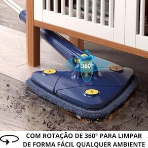 Design compacto, desmontável, simples e conveniente de usar; Economize tempo e esforço na hora de fazer a faxina em casa; Rotação de 360 remove toda a sujeira em uma única passada; Esfregão com cabeça triangular facilita a limpeza e alcança até os cantinhos mais altos e difíceis de limpar; Sistema inovador de torção separa a água suja da limpa, mantendo suas mãos longe da sujeira e dos produtos químicos; Não precisa torcer nem secar os panos sujos; Microfibra de alta absorção limpa e seca de forma eficaz todo tipo de piso. O que vem na Embalagem: