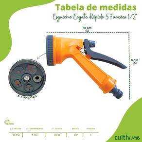 * Altura: 8 cm * Largura: 10 cm * Comprimento: 7 cm *5 funções de jato – Escolha entre diferentes tipos de fluxo de água para atender cada necessidade com eficiência. *Design ergonômico – Manuseio confortável e seguro para facilitar seu dia a dia.*Gatilho com trava – Permite o uso contínuo sem esforço, garantindo maior comodidade.*Alta durabilidade – Fabricado com materiais resistentes, proporcionando maior vida útil ao produto.*Compatibilidade universal – Conexão padrão de 1/2, ideal para a maioria das mangueiras disponíveis no mercado. *Facilidade no dia a dia com um produto inteligente e funcional! *Adquira já o seu Esguicho para Jardim Japi e torne suas tarefas mais práticas e eficientes! A Japi comercializa uma ampla linha de produtos que atendem diversas necessidades, prezando por qualidade e satisfação desde 1993. Nós da CULTIV.ME trabalhamos desde 2013 para trazer os melhores produtos ao alcance de todos. CULTIV.ME – O verde que faltava!