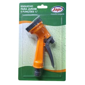 Esguicho para Jardim 5 Funções 1/2 Japi Descrição *Praticidade e eficiência para sua jardinagem! *O Esguicho para Jardim 5 Funções Japi é a escolha ideal para quem busca versatilidade e precisão na hora de irrigar plantas, lavar calçadas, carros e muito mais! Seu design ergonômico e gatilho de fácil acionamento garantem conforto e praticidade no uso diário. Características