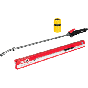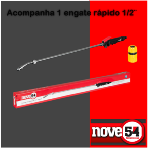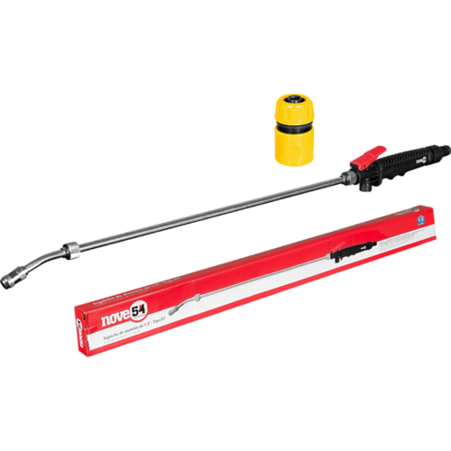 1 Esguicho para jardim. Indicado para uso doméstico. Ideal para lavar pisos, paredes, muros, carros, motos, entre outros, e também alcançar locais de difícil acesso. Devido ao formato do esguicho, com cabo longo em alumínio e um estreitamento na ponta, proporciona maior velocidade na saída da água, fazendo com que o tempo de trabalho seja até 70% menor em comparação a outros esguichos. Possui cabo anatômico e rosca 3/4" macho com conector de engate rápido para conexão na mangueira.