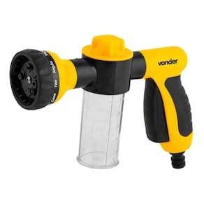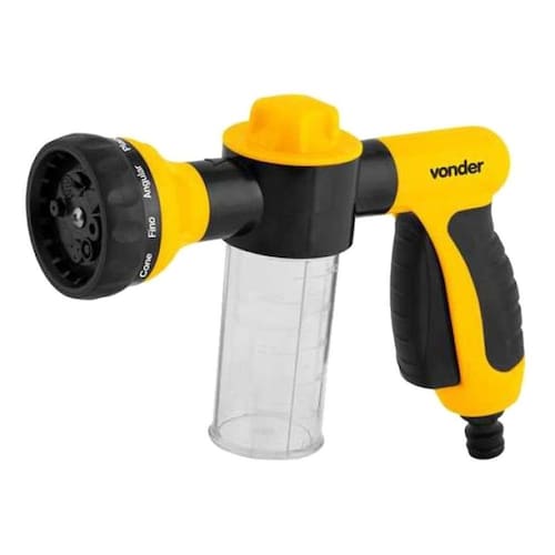 - Regulagem de saída: apenas água e água + espuma 3 níveis . - Possui corpo em plástico ABS de alta resistência e gatilho de acionamento com sistema LOCK ON trava ligado . Conta ainda com 8 posições de ajuste, incluindo reservatório para sabão, ideal para lavagem de calçadas, automóveis, entre outros. Indicado para uso doméstico, limpeza de calçadas, veículos e jardinagem.