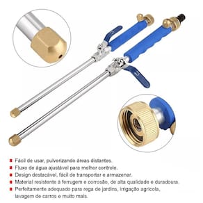 Esguicho Mangueira De Alta Pressão Jet 46cm Engate Lava Jato Jardim Cor: Preto Esguicho Mangueira De Alta Pressão Jet 46cm Engate Lava Jato Jardim Sua torneira está sem pressão de água Não tem problema, este esguicho faz a pressão aumentar para você poder lavar seu carro, calçada e tudo o mais como se fosse uma Wap. E economiza 70% de água, graças ao seu dispositivo de Venturi que faz com que a água aumente a velocidade. Características: - Fácil de usar, pulverizando áreas distantes. - Fluxo de água ajustável para melhor controle. - Design destacável, fácil de transportar e armazenar. - Material resistente à ferrugem e corrosão, de alta qualidade e duradoura. - Perfeitamente adequado para rega de jardins, irrigação agrícola, lavagem de carros e muito mais. Especificações: Material: liga de alumínio tubo , Cobre válvula de e TPR alça Engate rápido: Universal Comprimento: 46,5 cm Conteúdo da embalagem: - 01 Esguicho Mangueira De Alta Pressão - 01 Bico Marca: Não Informado