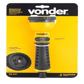 Possui estrutura em plástico ABS de alta resistência com empunhadura em borracha termoplástica e jato múltiplo com 7 posições de ajuste ducha total, ducha central, jato dirigido, cone, leque, misto e jato suave , com de fluxo. Especificações: Marca: Vonder Cor: Amarelo/Preto Medidas: 22 x 6 x 6 Material do esguicho para mangueira de jardim: Plástico Tipo do jato do esguicho para mangueira de jardim: Múltiplo Número de posições de ajuste do esguicho: 07 posições Tipo de entrada do esguicho para mangueira de jardim: Conector macho para engate rápido 1/2 Indicado para uso doméstico, limpeza de calçadas, veículos e jardinagem. Ean: 7893946158453