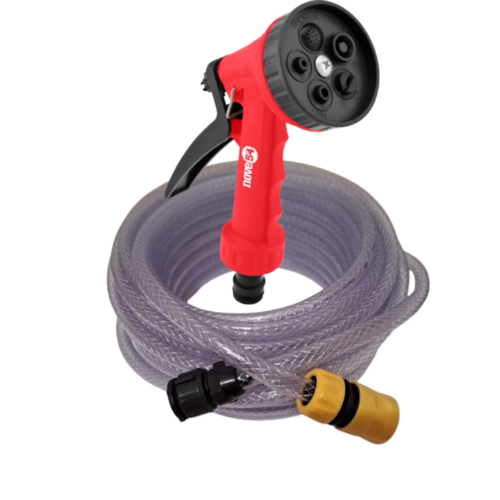 Conteúdo da embalagem: 1 Esguicho plástico jardim 5 funções NOVE54 + Mangueira para jardim, trançada, transparente, 20 m, VONDER