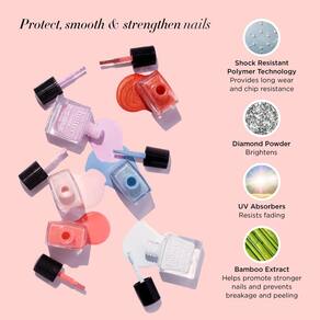 - Fórmulas Benéficas: Desfrute de fórmulas luxuosas com benefícios para a pele. Nossa linha de tratamentos para unhas e esmaltes é feita com ingredientes limpos, fórmulas benéficas e é sempre livre de crueldade e tóxicos.