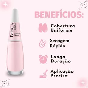 Benefícios PrincipaisO Esmalte Cremoso Impala A Cor Da Sua Moda é ideal para todas as ocasiões, desde o uso diário, adicionando um toque de elegância sutil, até eventos especiais onde você deseja que suas unhas se destaquem com um brilho duradouro e uma cor encantadora.