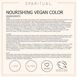 - Todas as cores de unhas nutritivas da SPARITUAL usam uma fórmula de 1 passo – sem necessidade de camada de base ou revestimento