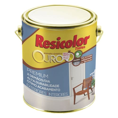 Esmalte Sintético Ouro Acetinado Extra Rápido é um esmalte a base de resina alquídica especial que confere secagem extra rápida – 30 minutos ao toque - possibilitando que sejam aplicadas 2 demãos no mesmo dia. Indicado para pintura de superfícies de madeira, ferro, galvanizado e alumínio em ambientes internos e externos. Sua formulação com silicone confere maior efeito deslizante à película retendo menos sujeira e facilitando o processo de limpeza, aumentando a durabilidade da pintura. Como trata-se de um produto Premium, possui ótima cobertura e alta resistência às intempéries proporcionando desempenho superior.