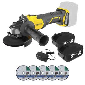 - 01 empunhadura lateral; - 01 capa de proteção; - 01 disco de desbaste; - 02 baterias de 20v e 4,0ah; - 01 carregador; - 05 discos de corte.