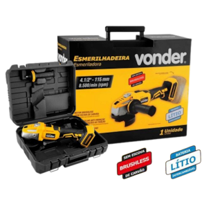 Este equipamento utiliza um modelo de bateria que pode ser intercambiável , ou seja, uma bateria que é compatível com outros modelos de ferramentas a bateria VONDER. Por isso, em sua próxima compra de ferramenta a bateria VONDER, procure um modelo que comece com a referência "I", ou que esteja identificado com o selo "Bateria Intercambiável VONDER". Desta forma, você garante modelos mais econômicos, sem a necessidade de aquisição de novas baterias e carregadores para uso em seu equipamento. Possui punho auxiliar antivibração com três posições de fixação, que atua como apoio durante o manuseio da ferramenta, adaptando-se a diferentes situações e locais de uso, muitas vezes de difícil acesso. Com estrutura compacta, conta com botão de trava do eixo e dupla isolação, garantindo maior segurança ao operador. Além de motor Brushless (sem escova de carvão), que garante maior durabilidade, resistência e desempenho.