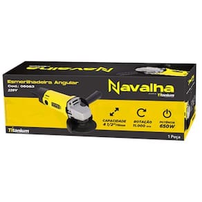 Esmerilhadeira Angular 4 1/2 650W 11000RPM Titanium A Esmerilhadeira Angular 4 1/2 650W modelo 7774 é uma ferramenta compacta e potente, ideal para cortes, desbastes e acabamentos em diversos materiais, como metal, concreto e alvenaria. Com um motor de alta performance e design ergonômico, ela oferece precisão e conforto para trabalhos profissionais e domésticos. Especificações Técnicas Marca: Titanium Modelo: 7774 110V / 7775 220V Potência: 650W Tensão: 220V ou 110V Diâmetro do Disco: 4 1/2 115 mm Velocidade Sem Carga: 11.000 RPM Tipo de : Deslizante Peso: Aproximadamente 2,0 kg Rosca do Eixo: M14 Nível de Ruído: Aproximadamente 90 dB Itens Inclusos Disco de corte/desbaste Chave de aperto Capa de proteção ajustável Empunhadura lateral Manual do usuário Peso: Aproximadamente 2,0 kg Rosca do Eixo: M14 Nível de Ruído: Aproximadamente 90 dB Itens Inclusos Disco de corte/desbaste Chave de aperto Capa de proteção ajustável Empunhadura lateral Manual do usuário Marca: Não Informado