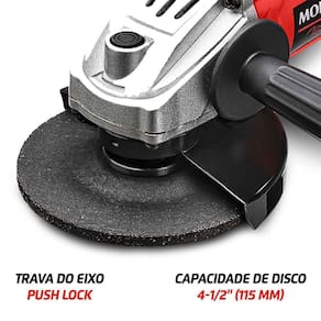 Produto: esmerilhadeira angular 4.1/2" 850 watts - fes-02 marca: mondial voltagem: 220vdescrição: a esmerilhadeira angular 4.1/2" 850 watts fes-02 da mondial é uma ferramenta poderosa e eficiente, projetada para superar suas expectativas em trabalhos de corte, desbaste e polimento. Com um motor de 850 watts e capacidade para atingir até 11.000 rotações por minuto, esta esmerilhadeira oferece uma performance impressionante para os mais variados projetos. A esmerilhadeira angular fes-02 da mondial é a ferramenta certa para profissionais e entusiastas que não abrem mão de eficiência e segurança. Características: • potência e velocidade: a ferramenta tem motor de 850w e chega a 11.000 rotações por minuto. • capacidade de disco: a fes-02 tem capacidade de disco de 4-1/2"" 115 mm . • trava do eixo: a trava do eixo push lock permite que você troque o disco de forma mais fácil, além de garantir sua segurança durante o uso. • mais segurança: a função empunhadura lateral, com duas opções de posição, e o protetor ajustável sem chave, proporcionam maior segurança na utilização da ferramenta. • botão liga/desliga com trava: com a trava, você não precisa segurar o botão liga/desliga para uso contínuo em trabalhos mais longos. • comodidade: 1 ano de garantia mondial.Especificações: potência: 850wdiâmetro do disco: 4.1/2"velocidade: 11.000 rpm100 % rolamentada.Itens inclusos: disco abrasivo
