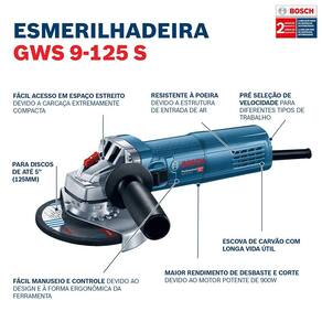 Esmerilhadeira Angular 5 POL 900W Gws 9-125 S com Controle de Velocidade com 3 Discos de Corte Inox StandardBOSCH