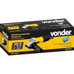 Esmerilhadeira angular 5 com velocidade variável 900w 220v vonder - eav905v Possui velocidade variável em 6 níveis e punho auxiliar com duas posições de fixação, que atuam como apoio durante o manuseio da ferramenta, adaptando-se a diferentes situações e locais de uso, muitas vezes de difícil acesso. Conta ainda com botão de trava do eixo, com trava de segurança e empunhadura ergonômica, que conferem maior conforto no manuseio, além de dupla isolação, garantindo maior segurança ao operador. Indicada para cortar, lixar, polir e esmerilhar superfícies metálicas. O equipamento deve ser utilizado somente com acessórios compatíveis. Especificações Modelo: eav 905v Potência: 900 w Capacidade da esmerilhadeira disco : 5 - 125 mm Rosca do eixo: m14 Tipo de velocidade: variável Rotação rpm : 2.800/min a 11.000/min. N1: 2.800/min; n2: 4.000/min; n3: 5.400/min; n4: 7.000/min; n5: 8.800/min; n6: 11.000/min Ajuste do cabo da esmerilhadeira: fixo Número de posições de ajuste do punho: 2 posições Segue norma: abnt nbr iec 60745-1 e abnt nbr iec 60745-2-3 Tensão v : 220 v Frequência: 50 hz/60 hz Aceleração transmitida nas mãos - braços do operador - ah: 4,32 m/s Incerteza da aceleração transmitida nas mãos - braços do operador - k: 1,5 m/s Massa aproximada peso : 2,083 kg Marca: Não Informado