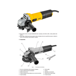1 Esmerilhadeira angular. Acompanha: 1 capa de proteção, 1 punho auxiliar e 1 chave dois pinos. Possui punho auxiliar com duas posições de fixação que atua como apoio durante o manuseio da ferramenta, adaptando-se a diferentes situações e locais de uso, muitas vezes de difícil acesso. Com estrutura compacta, conta com botão de trava do eixo e dupla isolação, garantindo maior segurança ao operador.