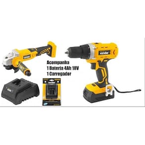 Conteúdo da embalagem: esmerilhadeira 4.1/2 com 1 bateria 4.0 ampéres 18v iev 1808 + 1 carregador de barteria vonder