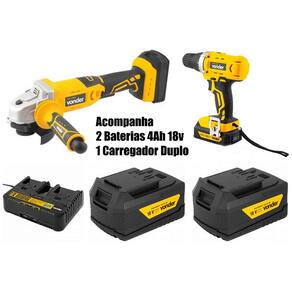 Conteúdo da Embalagem: Esmerilhadeira 4.1/2¨ c/ 1 bateria 4.0 ampéres 18V IEV 1808 + 1 carregador de barteria VONDER