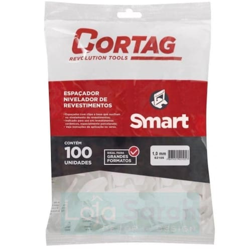 ESPAÇADOR NIVELADOR 1,0 mm SMART - PACOTE C/ 100 UNESPAÇADOR NIVELADOR 1,0 mm SMART - PACOTE C/ 100 UNO sistema de nivelamento é indicado para pisos e revestimentos cerâmicos, especialmente porcelanatos.INFORMAÇÕES TÉCNICASMarca: CortagInformações Complementares: Espaçamento de 1.0, 1.5 ou 2.0mm; Nivelamento total do revestimento; Atende bem a porcelanatos e revestimento de pequeno, médio e especialmente grandes formatos com espessura de até 1.7cmESPAÇADOR NIVELADOR SMART 1,0 mm: 1,0 mm (espessura) x 38 mm (c) x 37 mm (h) x 35 mm (l)OUTRAS ESPESSURASESPAÇADOR NIVELADOR SMART 1,5 mm: 1,5 mm (espessura) x 38 mm (c) x 37 mm (h) x 35 mm (l)ESPAÇADOR NIVELADOR SMART 2,0 mm: 2,0 mm (espessura) x 38 mm (c) x 37 mm (h) x 35 mm (l)NAO ACOMPANHAUTILIZE CUNHA CORTAG REFERENCIA 60694 (EMBALAGEM 24 UN) E 62420 (EMBALAGEM COM 500 UN) TAMANHOCUNHA TRADICIONAL Comprimnto: 95 mm Altura: 18 mm Largura: 23 mm