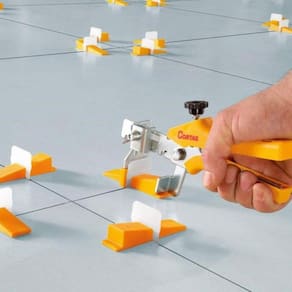 - Os espaçadores são os responsáveis por serem a base que conecta uma peça com a outra, são encaixados na parte de trás do porcelanato, entre a argamassa. - O sistema de nivelamento é indicado para pisos e revestimento cerâmicos, especialmente porcelanatos. - Garante nivelamento correto e minimiza o tempo de aplicação.