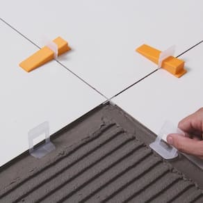 O espaçador nivelador de porcelanato é um produto que veio para auxiliar na instalação e no nivelamento de porcelanatos, pisos cerâmicos e revestimentos de parede, garantindo na fixação do porcelanato um nivelamento correto entre as peças e minimizando o tempo de aplicação. -fabricado com material 100% virgem, o espaçador nivelador de porcelanato é um acessório na cor transparente e é juntamente com o alicate de tração e as cunhas para fazer um nivelamento perfeito. Seu uso é de uma única vez, já que ele tem que ser quebrado em sua retirada. -proporciona assentamento alinhado -reduz o tempo de colocação do revestimento. Funciona como anti-dilatador, evitando o possível deslocamento das peças cerâmicas, material composto de polipropileno. Instruções para colocação do espaçador/nivelador 1 - Após a aplicação da argamassa, insira o espaçador/nivelador por baixo do porcelanato, piso ou revestimento cerâmico nos quatro lados da peça. 2 - Insira na cunha no espaçador/nivelador para começar o nivelamento. Em seguida conclua o ajuste com o auxílio do alicate nevelador. 3 - Ajuste o alicate no travamento da primeira peça. O parafuso A regula a posição da base móvel conforme a espessura do revestimento. O parafuso B regula o limite máxima para ajustar a cunha sem romper o espaçador/nivelador. 4 - Uma vez regulado o alicate, o travamento das demais peças será o mesmo definido no primeiro ajuste, garantindo uma operação uniforme do início ao fim do assentamento. 5 - Após a cura e secagem da argamassa, bata lateralmente em cada espaçador/nivelador com um martelo de borracha Cortag. A parte superior do espaçador irá se romper liberando as cunhas. Carcterísticas: Cor: Transparente Tamanho: 1,5mm Quantidade: 500 Unidades O espaçador nivelador de porcelanato é um produto que veio para auxiliar na instalação e no nivelamento de porcelanatos, pisos cerâmicos e revestimentos de parede, garantindo na fixação do porcelanato um nivelamento correto entre as peças e minimizando o tempo de aplicação. Marca: Não Informado