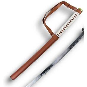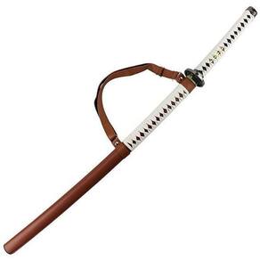 Esta linda katana e revestida de couro com detalhes em tecido branco lamina de aço sem corte.