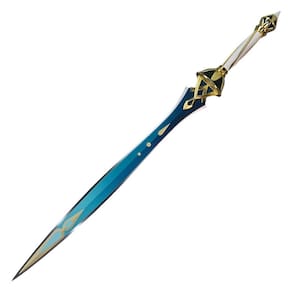 Espada Xiphos Moonlight Genshin Impact Com Suporte De Mesa Espada Xiphos' Moonlight Genshin Impact Decorativa Em Aço
