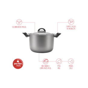 A praticidade e segurança de preparar o macarrão na caçarola e escorrer diretamente na tampa. A tampa possui uma trava de segurança, é só fechar e escorrer a massa. A Espagueteira Brinox, que tem capacidade para até 5,5L e é de alumínio com interior antiaderente – que faz com que seja muito mais fácil de limpar e deixa o preparo dos alimentos com menos óleo. Está disponível em 3 cores: prata, turquesa e cereja. Uma panela especialista no que faz._x000D_
