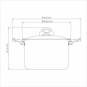 Corpo de alumínio com espessura de 1, 6 mm que proporciona cozimento rápido e uniforme. Revestimento interno e externo de antiaderente Starflon Max que não gruda, é fácil de limpar, mais durável e não é prejudicial à saúde, pois é livre de PFOA. Tampa para espagueteira de alumínio com furos escorredores e trava. Alças de baquelite antitérmico e pegador de nylon que oferecem segurança durante o manuseio. Pode ir à máquina de lavar louças facilitando seu dia a dia.