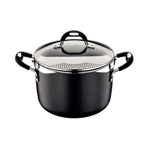 Espagueteira Mônaco Induction Preto 22 cm 5,4 L em Alumínio com Revestimento Interno Antiaderente e Alças em Silicone Tramontina