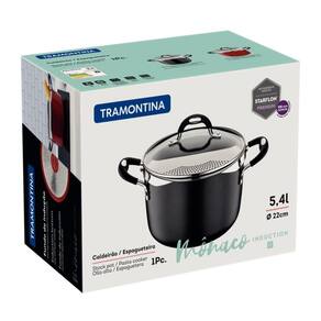 Espagueteira Mônaco Induction Preto 22 cm 5,4 L em Alumínio com Revestimento Interno Antiaderente e Alças em Silicone Tramontina - Especificações Técnicas