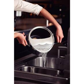 Com a Espagueteira Tramontina Mônaco Induction em Alumínio com Revestimento Interno e Externo Antiaderente Starflon Premium Preto com Tampa 22 cm de diâmetro 5,4 L você vai deixar o preparo daquele espaguete delicioso, ainda mais especial! Ela é produzida com corpo em alumínio com espessura especial e revestimento antiaderente Starflon Premium, características que juntas proporcionam um cozimento rápido e uniforme dos alimentos e evitam que eles grudem em sua superfície. Ela vem acompanhada de uma tampa de alumínio com trava antigiro: não gira durante o preparo. Seu cabo é metálico com proteção de silicone que reduz a propagação de calor e aumenta a segurança e o conforto durante o manuseio. Além disso, é fácil de limpar e pode ir à máquina de lavar louças!