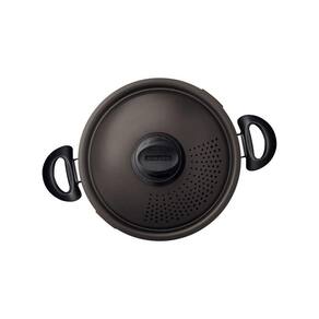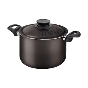 Corpo de alumínio com espessura de 1,8 mm que proporciona cozimento rápido e uniforme. Revestimento interno e externo de antiaderente Starflon Max que não gruda, é fácil de limpar, mais durável e não é prejudicial à saúde, pois é livre de PFOA. Tampa para espagueteira de alumínio com furos escorredores e trava. Alças de baquelite antitérmico e pegador de nylon que oferecem segurança durante o manuseio. Pode ir à máquina de lavar louças facilitando seu dia a dia.