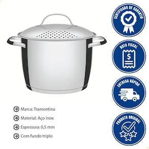 - A Espagueteira Tramontina Allegra em Aço Inox com Fundo Triplo 20 cm de diâmetro 4,4 L vai transformar você em um verdadeiro mestre das massas!