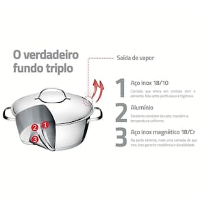- Feita em aço inox de alta qualidade e com fundo triplo, ela garante cozimento rápido, uniforme e econômico, preservando o sabor e os nutrientes dos alimentos.