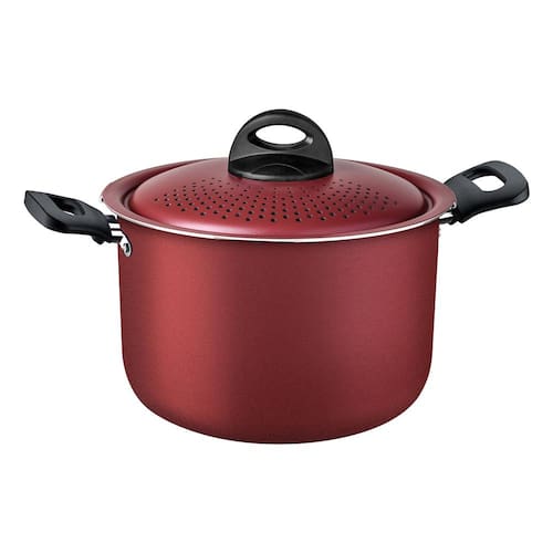 Ela é produzida em alumínio com revestimento interno e externo em antiaderente Starflon T1, com a tecnologia T, o que garante à peça maior poder de antiaderência, maior resistência à abrasão, maior durabilidade e maior facilidade na limpeza. Com ela você irá preparar massas de forma muito mais fácil e rápida, pois permite que a água escorra, dispensando o uso do escorredor.