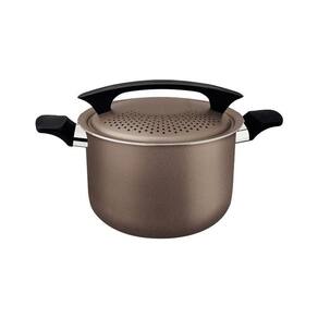 A espagueteira Tramontina Milazzo antiaderente 22 cm é a aliada certa para quem valoriza praticidade no preparo de massas. Com corpo em alumínio e revestimento interno e externo Starflon Max, distribui o calor de forma uniforme e evita que o macarrão grude, mesmo com pouco óleo. As alças de baquelite antitérmico com toque suave garantem manuseio e confortável. A tampa de alumínio com furos escorredores e trava de facilita o escoamento da água sem o uso de peneiras, otimizando seu tempo na cozinha. com fogão a gás, elétrico e vitrocerâmico, a espagueteira Tramontina Milazzo une eficiência e versatilidade para o dia a dia.