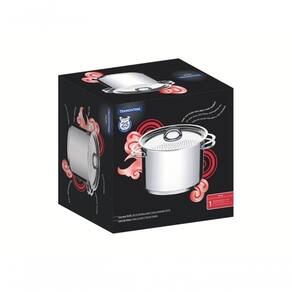 A Tramontina usa a mais alta tecnologia para produzir panelas de aço inox com fundo triplo. São duas camadas de aço inox envolvendo uma camada de alumínio. Dessa forma, o calor da chama se distribui por igual, deixando os alimentos muito mais macios e saborosos. Além disso a comida cozinha muito mais rápido, o que acaba gerando economia.