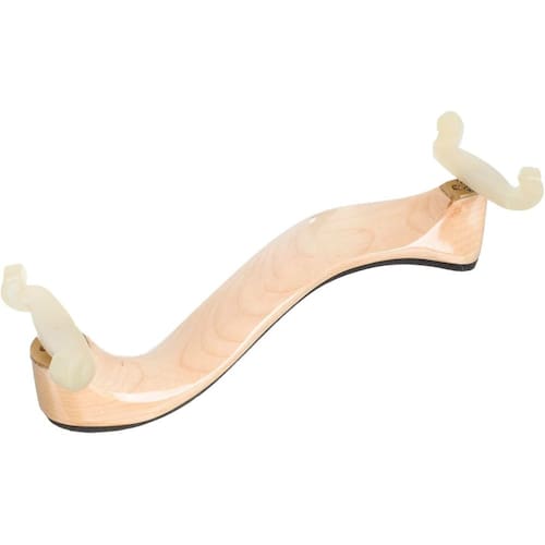 A espaleira de violino Ronsani é feita de madeira, finalizada com verniz brilhante e é fabricada com base na conhecida espaleira Mach One.
