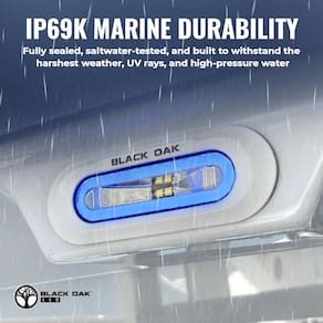 Atualize a iluminação do seu barco com a luz LED Low Pro Marine Spreader da Black Oak – Montagem embutida — a luz difusora mais avançada e versátil disponível. Com três modos de iluminação, você pode alternar facilmente entre 100% de brilho, 50% de brilho ou modo somente halo com um interruptor padrão - sem necessidade de reguladores adicionais. Com uma potente saída de 2.000 lúmens e propagação de feixe de 120°, oferece iluminação excepcional para atividades noturnas, desde a docagem até a pesca. Projetada para durabilidade, esta luz marinha com classificação IP69K à prova d'água resiste a ambientes marinhos agressivos, incluindo spray de sal, água de alta pressão e condições climáticas extremas. A luz de realce de halo integrada adiciona um toque elegante e moderno enquanto fornece iluminação ambiente sutil para maior visibilidade. Disponível nas opções de anéis de halo branco, azul, vermelho ou âmbar, permite que você personalize a função e o estilo. Fácil de instalar, esta luz embutida possui uma moldura de policarbonato de alta qualidade de encaixe, ocultando todas as ferragens de montagem para um acabamento limpo e de fábrica. Seja você um velejador ou recreativo, a luz de propagação Low Pro oferece desempenho, confiabilidade e estilo de alta qualidade para sua embarcação.