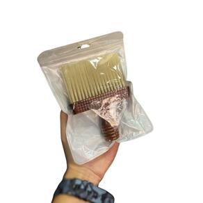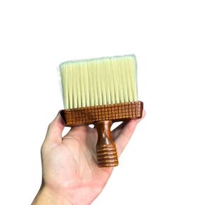 Características: -O manípulo é feito de madeira e os fios é feito de nylon, leve e conveniente de usar. - Punho de madeira tem sulcos que não são escorregadios e fáceis de segurar. - Sensação de toque de cabelo suave, durável e remover o cabelo rapidamente e facilmente. - O design exclusivo é ótimo para espalhar as orelhas e o pescoço. - É um acessório perfeito e imperdível para barbeiros e cabeleireiros. Especificações: Material da Cerdas: nylon Material da alça: Madeira Comprimento total: 15,8 cm Largura : 10 cm Peso: 80g (aprox.)