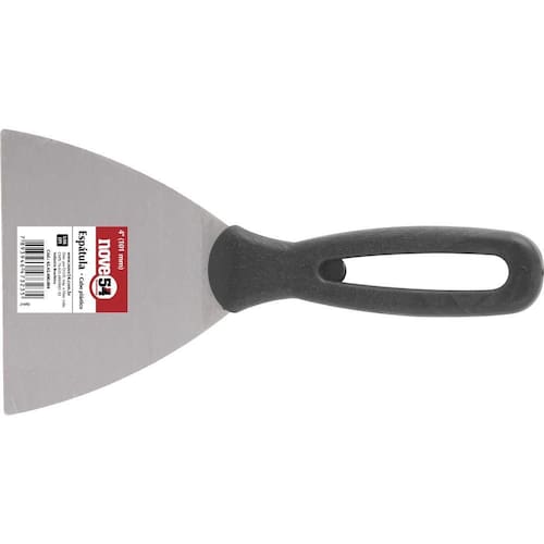 Espátula Betumadeira Aço Carbono 4 10,1cm Cabo Plástico - NA espátula betumadeira da marca Nove54 é a ferramenta ideal para quem busca eficiência e durabilidade em seus trabalhos de acabamento. Com uma lâmina de aço inoxidável, esta espátula é perfeita para aplicação de massa corrida, argamassa, textura, gesso e raspagens em geral. O aço temperado flexível garante que a espátula não entorte ou quebre, proporcionando um uso prolongado e seguro. Além disso, o cabo anatômico de plástico oferece conforto e firmeza, mesmo durante longas horas de trabalho. A espátula é pendurável, facilitando o armazenamento e organização em sua área de trabalho. Com um perfil de raspagem liso, ela é versátil e pode ser utilizada em diversas superfícies, garantindo um acabamento impecável. Especificações TÉCNICAS- Largura da lâmina: 4 - 101 mm- Material da lâmina: Aço inoxidável- Material do cabo: Plástico- Modelo: 7893946473235- Código universal de produto: 7893946473235- É pendurável: Sim- Usos recomendados: RemoçãoFUNÇÕES E CARACTERÍSTICAS- Cabo anatômico para maior conforto- Aço temperado flexível- Pendurável para fácil armazenamentoINSTRUÇÕES DE USO1. Utilize a espátula para aplicar ou remover materiais como massa corrida, argamassa e gesso.2. Após o uso, limpe a lâmina com um pano úmido para evitar acúmulo de resíduos.3. Armazene em local seco e arejado para prolongar a vida útil da ferramenta. Itens INCLUSOS- 1 Espátula= Marca: Não Informado