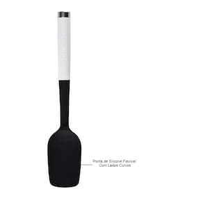 Um cabo estável feito de plástico de alta qualidade garantirá uma aderência segura e conforto durante a mistura. A espátula é resistente ao calor de até 260 C.