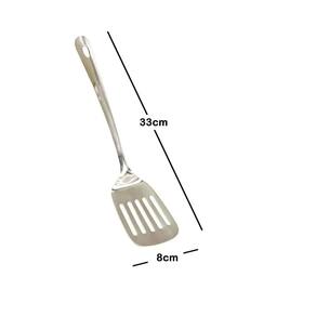 Espátula colher vazada inox 33cm gourmet premium cozinha Espatula de metal vazada para fritura em frigideira 33cm Deixe sua cozinha ainda mais completa e funcional na hora de cozinhar. Com design moderno e tradicional a espatula é feita em metal com sua base vazada é ideal para mexer alimentos, auxilia em frituras no preparo de ovos, panquecas, torradas, bolos ou até mesmo para se servir. Ideal também para levar alimentos quentes ou frios de um recepiente para o outro ajudando também a evitar que arranhe sua panela.