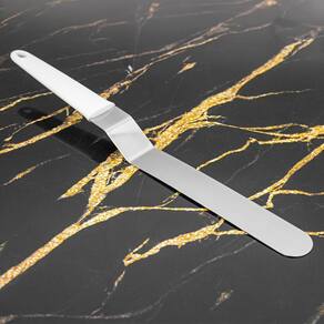 Aplicar glacê e coberturas de forma suave e uniforme. Alisar a superfície de seus bolos para um acabamento impecável. Criar efeitos texturizados e detalhes delicados. Distribuir massas e recheios de forma precisa. Facilitar a limpeza graças ao material em aço inoxidável.