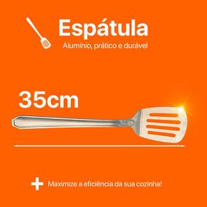 Fabricada em aço inoxidável com acabamento polido Design leve e ergonômico para facilitar o manuseio Comprimento aproximado de 35 cm ideal para diversos tipos de preparo Resistente ao calor e à corrosão Fácil de lavar e pode ir à lava-louças Ideal para uso doméstico e profissional