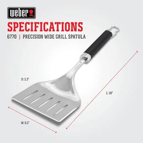 Weber Espátula larga para churrasqueira de precisão, prata/preta, grande - Design de borda chanfrada de 3 lados para fácil abordagem e precisão de virar - Estrutura durável de aço inoxidável - Alça de toque macio projetada para aderência antiderrapante - Pode ser lavado na lava-louças para facilitar a limpeza - O laço de metal permite pendurar o armazenamento - Garantia de 2 anos