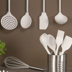 Lance a primeira pedra aquele que nunca riscou uma panela Por isso, somos fãs dos utensílios de silicone na hora de preparar os alimentos, pois deslizam suavemente pela panela, evitando arranhões. Além disso, você pode bater a haste para remover o excesso sem danificar a borda. O silicone facilita muito a limpeza, graças à sua superfície lisa que não retém odores, evita a proliferação de bactérias e não conduz o calor gerado pelo fogão.